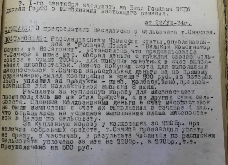 «Великий комбинатор Сачков из Веселовки». То есть книга Ильфа и Петрова уже вышла и читалась. И журналисты из газеты «Рабочая Пенза» воспользовались именем главного героя, чтобы написать о вскрытых недостатках. А горком партии проверил факты и принял свои меры…