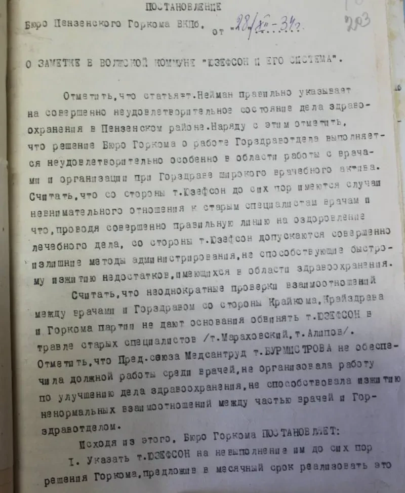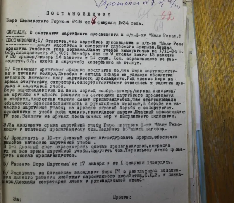 Год 1934. Какие вопросы Пензенским горкомом ВКП(б) обсуждались тогда?