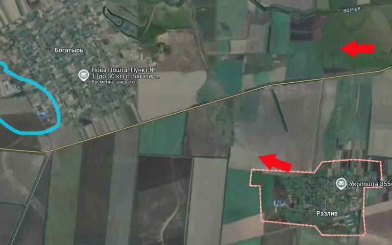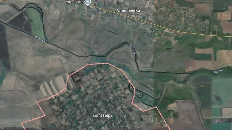 ВСУ рассчитывают на то, что российская армия не сможет атаковать Богатырь с севера, так как там протекает река Волчья. Чтобы затруднить её форсирование, противник навёл минные поля по обоим берегам Волчьей, а также насытил личным составом позиции в Алексеевке, что севернее Богатыря – именно за рекой.