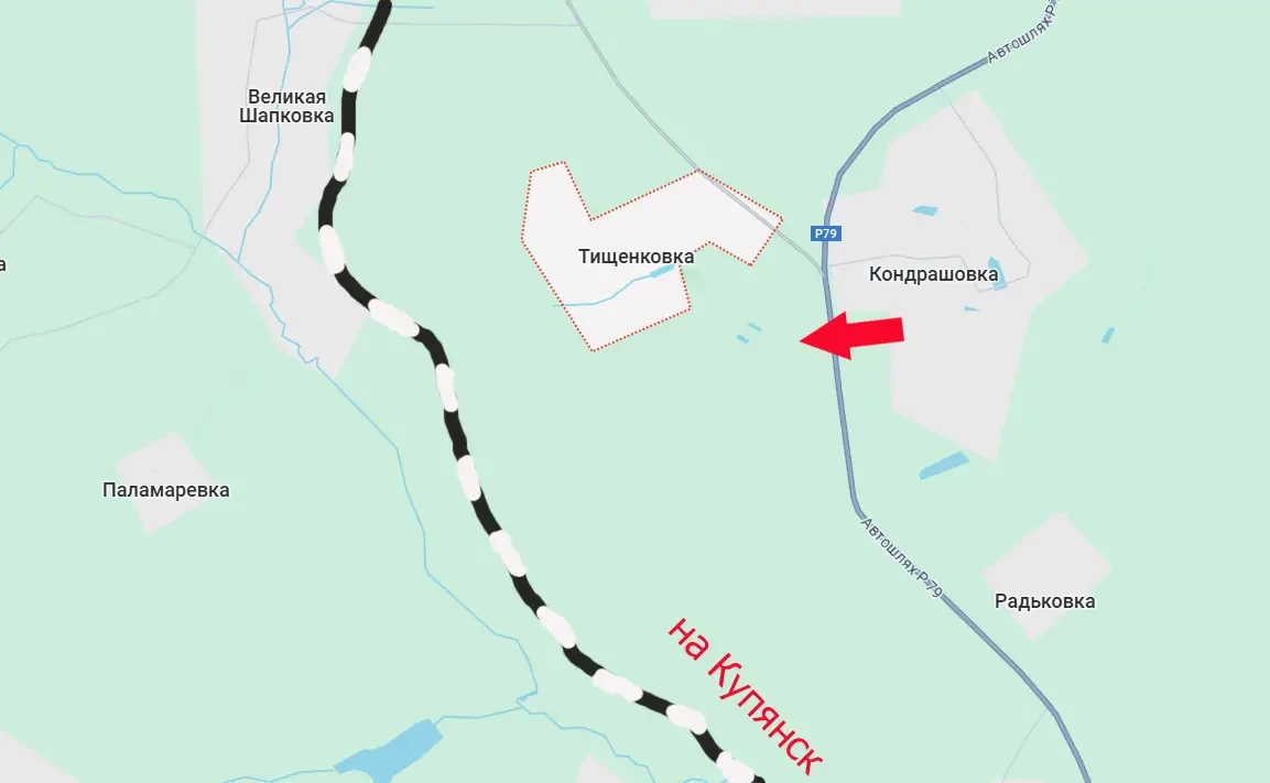 Теперь противник опасается того, что ВС РФ перережут железнодорожную ветку, проходящую западнее упомянутой Кондрашовки. От Тищенковки, за которую идут бои, до ближайшего участка железной дороги (между станциями 141-й км и Снежная) около полутора километров. Соответственно, уже сейчас безопасно перегонять по ней военные эшелоны в Купянск у противника нет возможности.