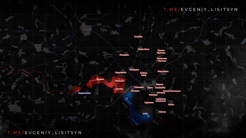 «Из Гуево и окрестностей населенного пункта идет эвакуация гражданского населения, в том числе несовершеннолетних. Упорные бои идут на окраинах хутора Олешня. Противник активно использует бронетехнику. Наши штурмовые группы выдавливают противника из населенного пункта, а операторы БПЛА и артиллеристы сжигают вражеские ББМ. Из Садков (Сумская область) в приграничные лесные массивы Суджанского района враг ночью перебросил несколько групп ССО, личный состав которых уничтожили наши морские пехотинцы. Восточнее села Веселовка (Сумская область) противник предпринял попытку переброски личного состава на ББМ. Северяне уничтожили штурмовую группу противника вместе с техникой», - сообщили авторы канала.
