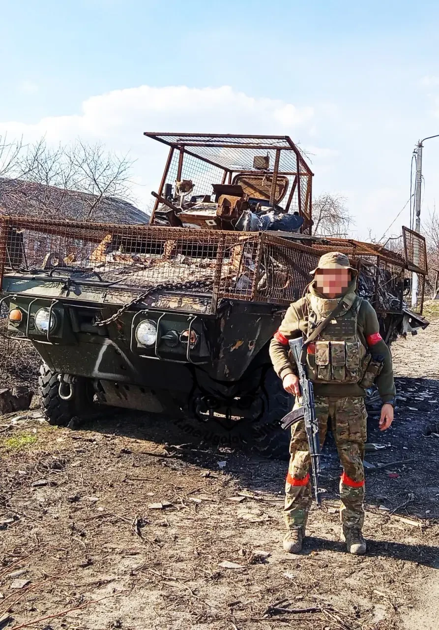 Два подбитых M1117 и другая техника, февраль 2025 г., Харьковская область. Фото Telegram / «Судоплатов»