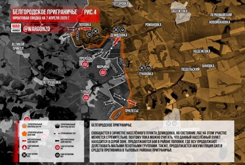 Новая военная сводка от 7 апреля 2025 года - карта боевых действий, ситуация на фронтах, обстановка в Донбассе. Последние новости - в материале N4k.