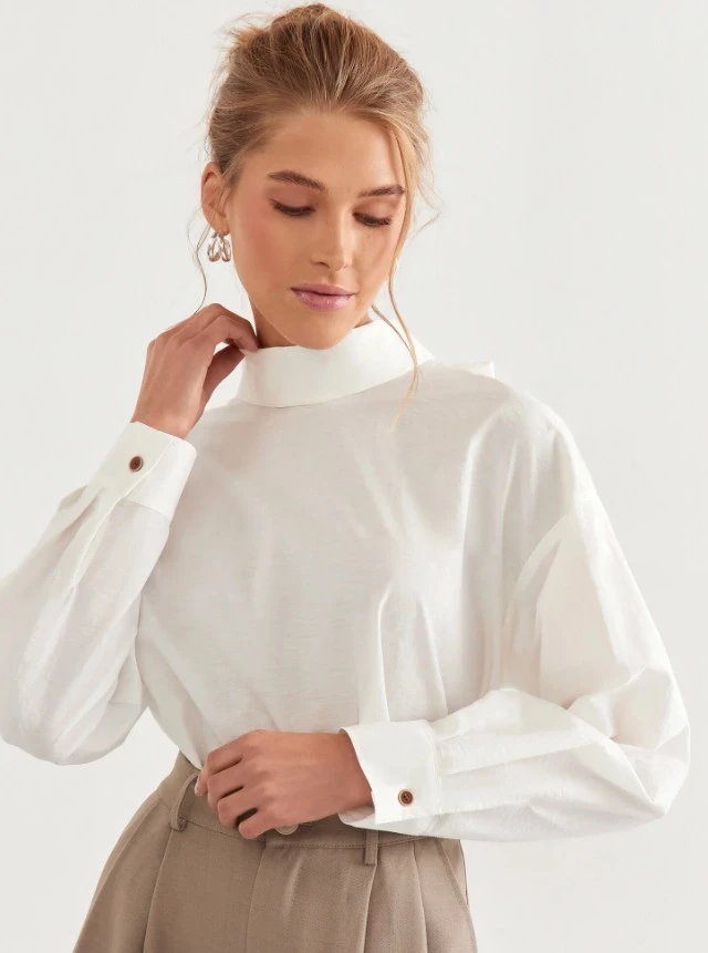 Летние женские блузки — это не просто элемент гардероба, а то, что делает лето по-настоящему стильным. Эта блузка от Sansa — отличный пример сочетания удобства и модных трендов. Классический дизайн с укороченными рукавами и округлым вырезом создаёт ощущение лёгкости и свежести, а перфорация ткани добавляет изюминку. Изготовленная из 100% хлопка, она идеально подходит для жаркого лета, обеспечивая отличную воздухопроницаемость. Легкость материала и комфорт при носке делают её идеальной как для офисной обстановки, так и для университетских дней или летних вечеринок. Универсальный белый цвет легко комбинируется с любыми брюками, юбками и шортами, добавляя нотку сдержанного, но стильного шарма. Отлично подходя для девушек всех типов фигур, эта модель с прямым кроем также подойдёт дамам плюс сайз, благодаря своему свободному и комфортному силуэту. К тому же, она ещё и может стать частью школьной формы или офисного стиля, сочетая практичность с модой.