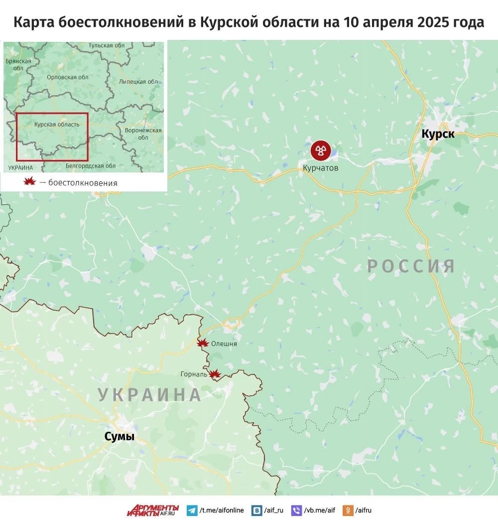 Свежая карта боевых действий в Курской области. Данные на сегодняшний день, 10.04.2025