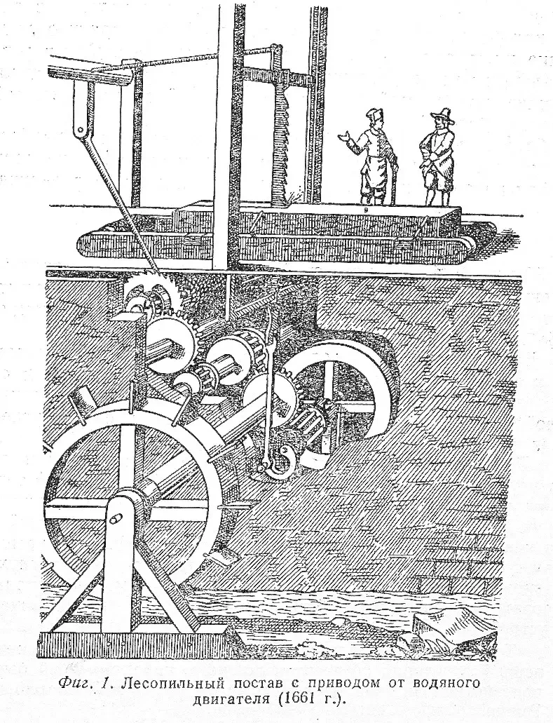 Решение задачи отбора мощности у реки дало сильный толчок развитию конструкторской мысли и явило на свет новую профессию: техник-механик. Наиболее интересной старинной технической конструкцией являлся лесопильный постав 17 века.