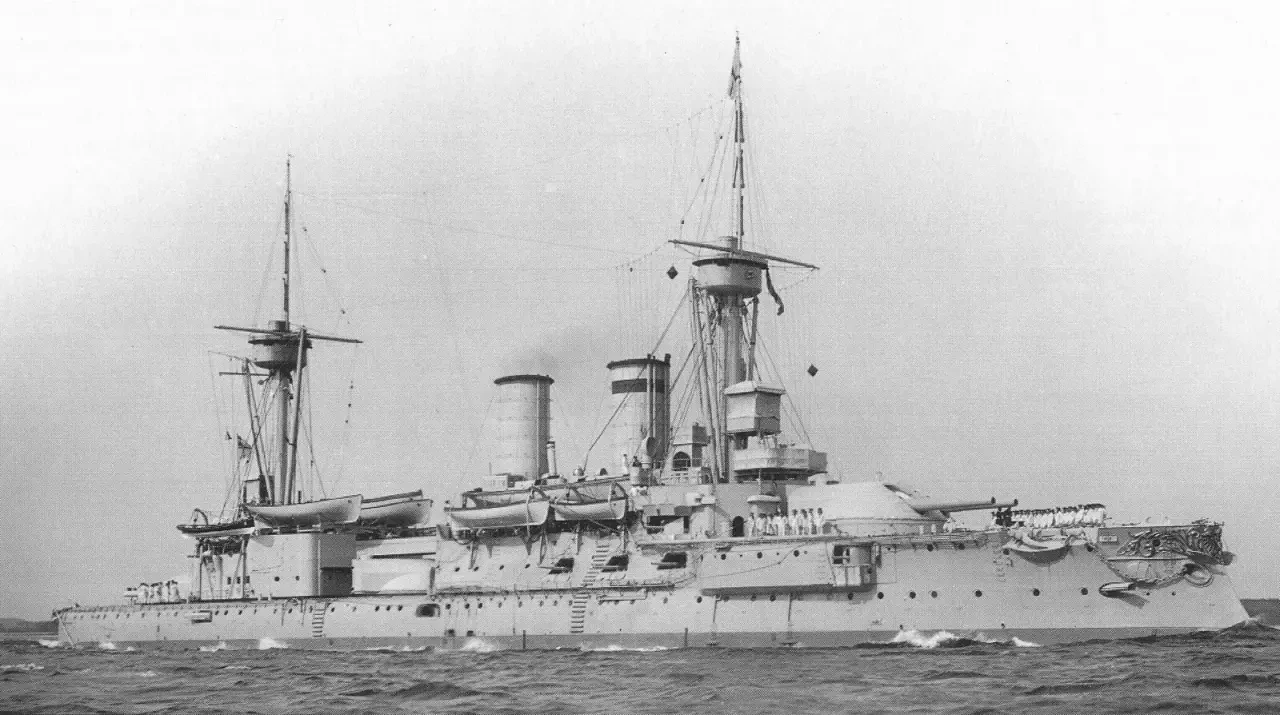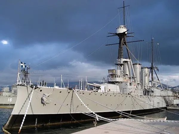Командование кораблём принял капитан 2 ранга Иоаннис Дамианос 16 мая 1911 года, но в Спитхеде на корабле случился мятеж: греческие матросы не знали, что сыр с голубой плесенью — деликатес, а решили, что их просрочкой накормить хотят... В общем, командира сняли с должности, а назначили нового — капитана 2 ранга (я перевожу звание «кэптен» как капитан 2 ранга, хотя в американской системе военно-морских званий это скорее капитан 1 ранга) Павлоса Кунтуриотиса. С началом войны Кунтуриотис получил контр-адмирала и стал командующим BN, а его место на командирском мостике флагмана занял Софоклис Дусманис.