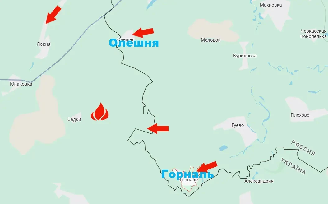 Украинские мониторинговые паблики со вчерашнего дня на картах расширили так называемую «серую зону» до территории Сумской области, что к востоку от населённого пункта Садки. Это означает, что приграничье севернее села Горналь ВСУ уже не контролируют.