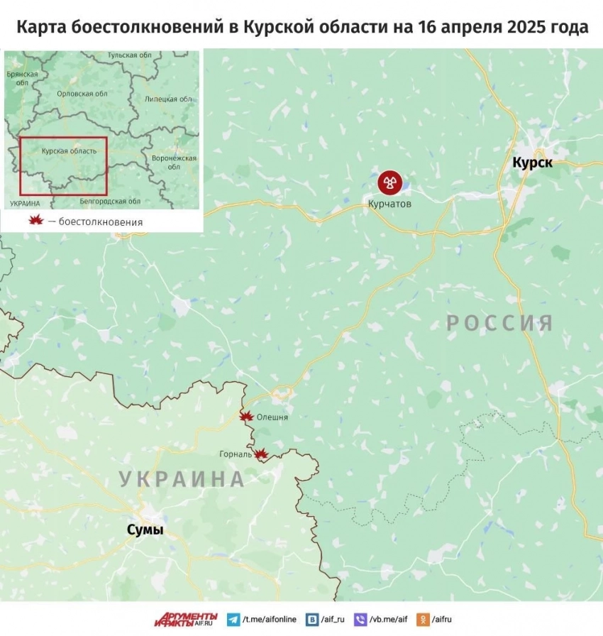Свежая карта боевых действий в Курской области. Данные на сегодняшний день, 16.04.2025