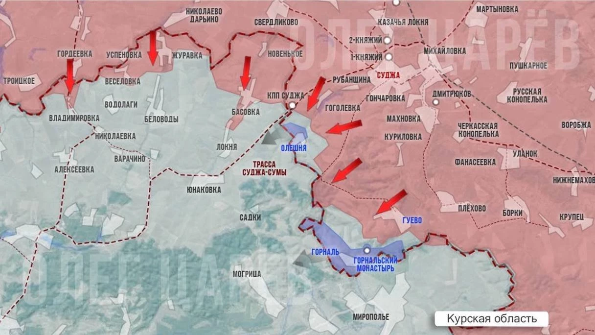 Издание "АиФ" сообщило о подтвержденном факте взятия российскими войсками Свято-Николаевского Белогорского мужского монастыря, расположенного в Горнале Курской области. Член президиума Общероссийской организации «Офицеры России», ветеран спецподразделений, полковник запаса Тимур Сыртланов заявил об успешных действиях морских пехотинцев России в данной операции.