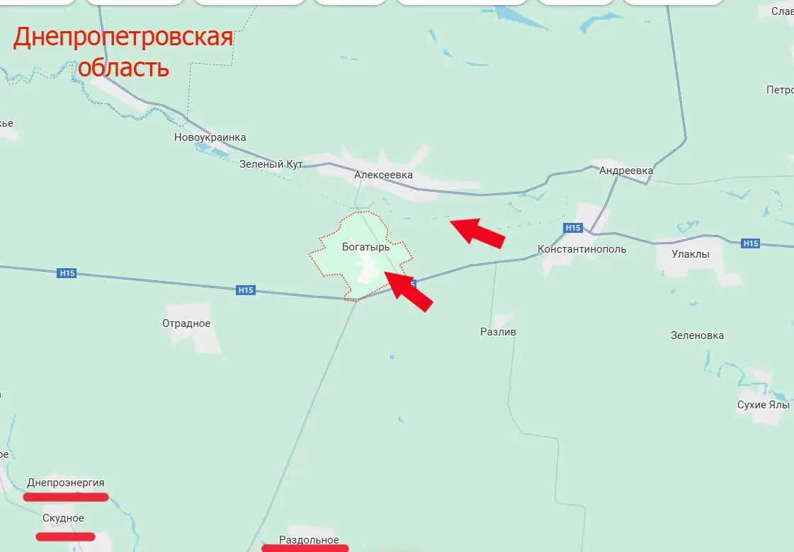 В условиях серьёзного сопротивления со стороны ВСУ наши войска вышли на окраины села Богатырь, что юго-западнее Покровска. По сути, Богатырь – это «стыковочная» зона Покровского и бывшего Великоновосёловского направлений. Село это находится у автодороги Запорожье-Константинополь-Донецк. До ближайшей точки Днепропетровской области от Богатыря – около 6 км.