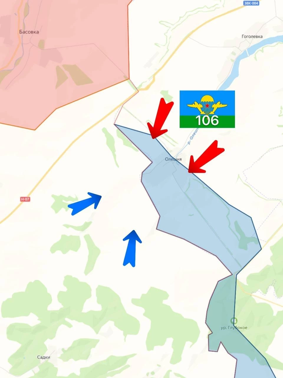 Российские подразделения ВДВ, сломив упорное сопротивление противника, выбили оккупантов из нескольких опорных пунктов в окрестностях хутора Олешня, закрепляются.