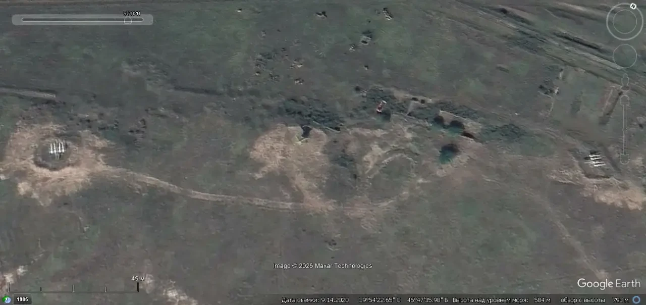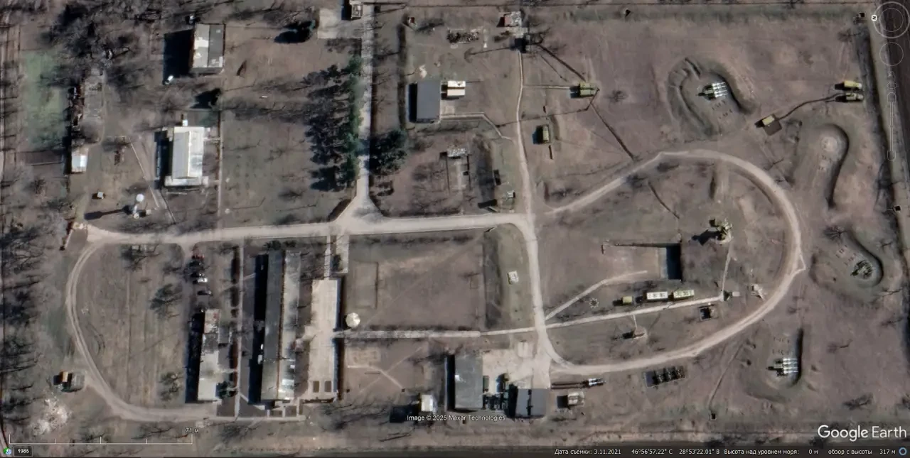 Спутниковый снимок Google Earth: позиция ЗРК С-125М1 в Бейлаганском районе Азербайджана, снимок сделан в марте 2025 года