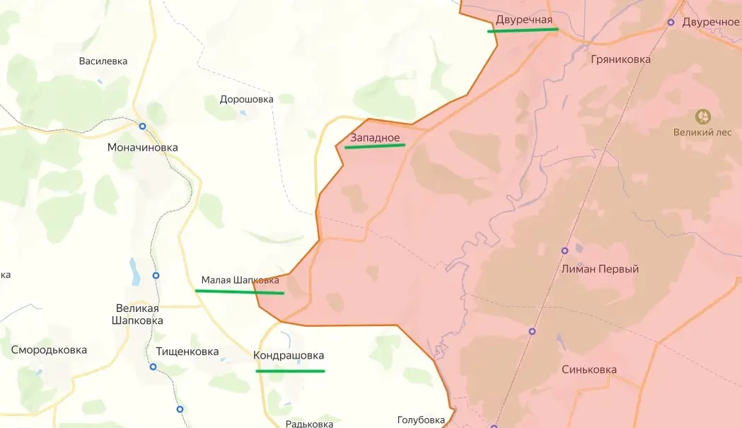 На данный момент крайне сложная ситуация сложилась для противника в окрестностях Купянска. Здесь активно работает авиация ВКС России, нанося удары по украинским позициям. Российские штурмовые подразделения уже находятся в Малой Шапковке к северу от города. На западном берегу Оскола российские военные закрепляются в районе Двуречной. Ее окрестности сейчас зачищаются от противника. Он старается удерживать оборону на дороге, соединяющей Двуречную с Великим Бурлуком.