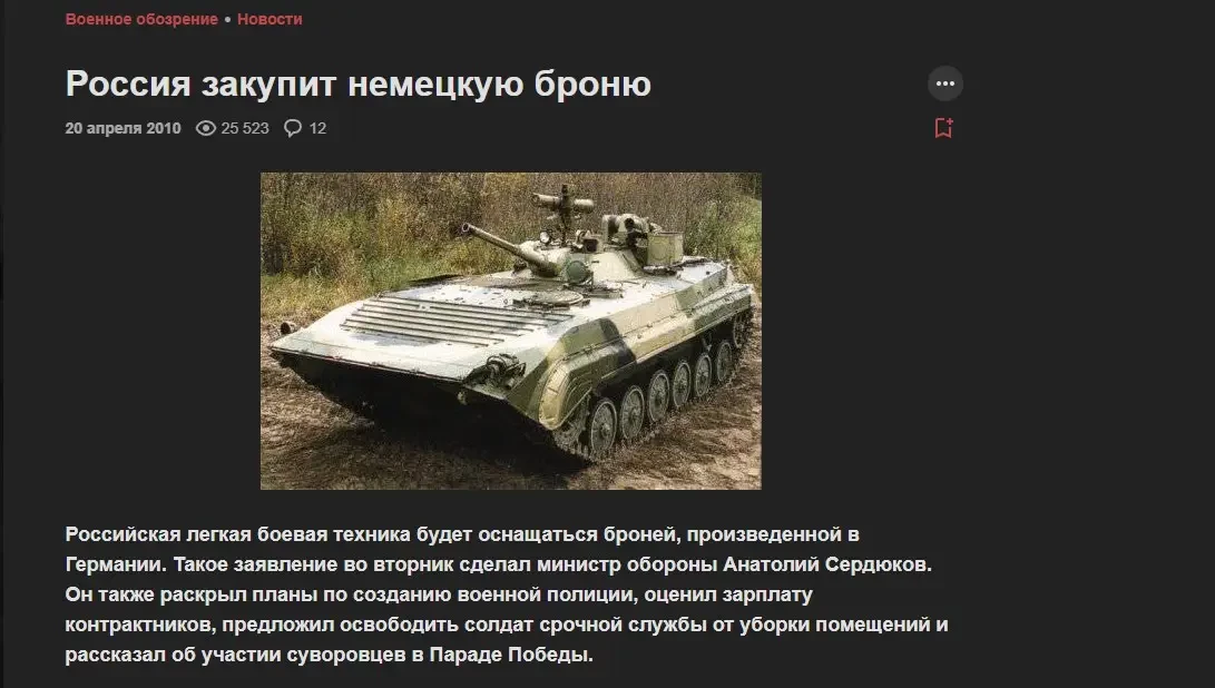 Работа была проделана очень оперативно, и уже 20 апреля 2010 года вышел первый материал. И этот день считается днем рождения «Военного обозрения».