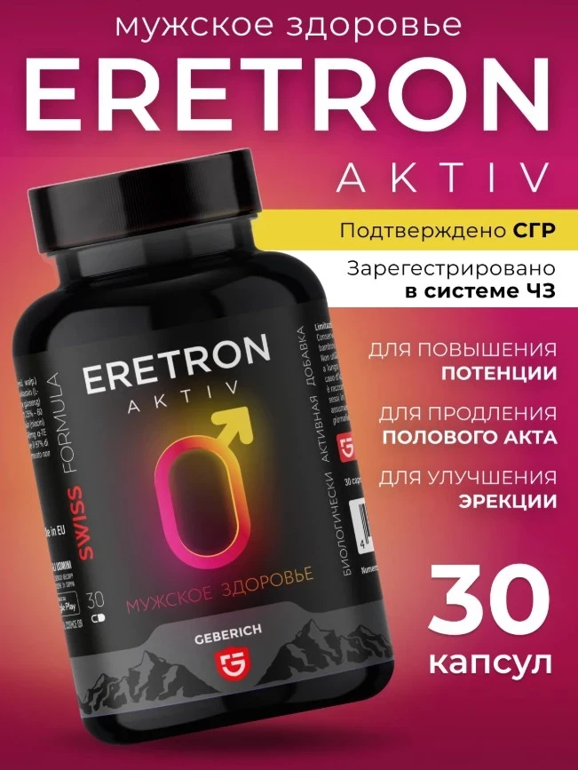 Эретрон от GEBERICH — это высокоэффективный комплекс для мужчин, специально разработанный для поддержки репродуктивной системы, гормонального баланса и здоровья простаты. В составе — экстракт корня маки, который повышает либидо и выносливость, L-аргинин для улучшения кровообращения и нормализации эректильной функции, а также экстракт сереноа ползучего для защиты простаты. Цитрат цинка помогает поддерживать уровень тестостерона, а витамины и селен обеспечивают мощную антиоксидантную защиту, укрепляя иммунитет.