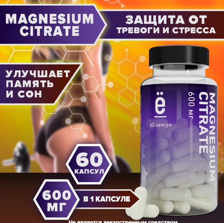 Магний в форме цитрата от Ё|батон — это эффективный способ восполнить дефицит магния в организме. Цитрат магния помогает улучшить обмен веществ, поддерживает нормальную работу клеток и способствует оптимальной минерализации костей. Этот минерал также играет ключевую роль в функционировании нервной системы, снижая возбудимость нейронов и улучшая состояние кожи и волос. Продукт особенно полезен для снятия стресса, борьбы с судорогами и поддержания здоровья сердечно-сосудистой системы.
