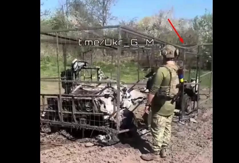 От броневика, на котором перемещались ВСУ, практически ничего не осталось. Он сгорел дотла. Уцелел разве что противодронный «мангал», который, очевидно, со своей задачей не справился.