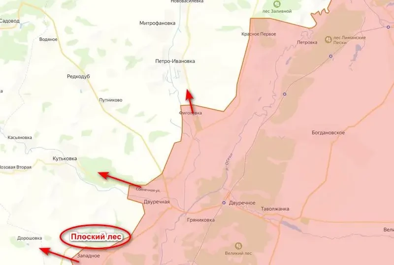 На другом фланге, в районе населенного пункта Западное, наши подразделения заканчивают зачистку Плоского леса, выбивая оттуда засевшего противника. Также продолжается наступление в сторону самого Купянска, штурмовики «Западной» группировки взламывают оборону ВСУ. Бои идут ожесточенные, противник город уступать не намерен. Тем не менее движение к нему с северного фланга идет. А вот с юга и востока продвижение если не застопорилось, то очень медленное.