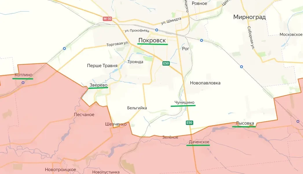 Наиболее активные боевые действия сейчас ведутся в районе Зверево, к северу от Даченского и вдоль трассы, ведущей от Котлино к Красноармейску. К северу от Малиновки российские военные активно применяют для ударов по вражеским позициям беспилотники-камикадзе.