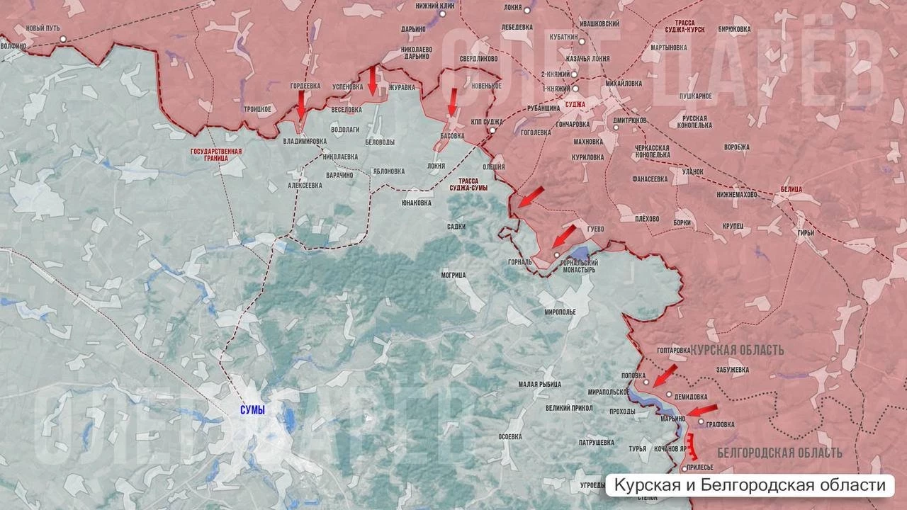 На территории Сумской области также идут ожесточённые бои. Наступление армии России продолжается в районах Локни и Беловодья. Противник несёт большие потери и пытается усилить передовые рубежи, перебрасывая резервы.