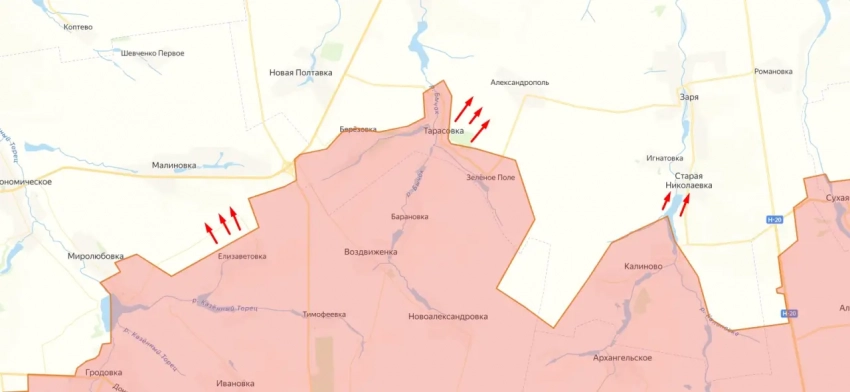 К востоку от Покровска ожесточённые бои идут в районах Елизаветовки, Тарасовки и Старой Николаевки. При этом, по данным вражеских мониторинговых ресурсов, особенно тяжёлая ситуация для ВСУ сложилась под Тарасовкой, где российские войска почти полностью взяли под контроль Водяное Второе и Зелёное Поле.