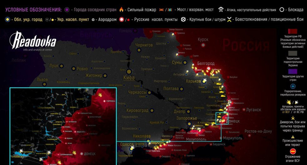 Последние новости, поступающие в режиме реального времени из зоны проведения специальной военной операции (СВО), позволяют говорить о преимуществе Вооружённых сил Российской Федерации (ВС РФ). При этом в последние несколько дней украинские войска стали чаще контратаковать, несмотря на внушительные потери как в живой силе, так и в технику. В новом материале lost-newsвашему вниманию предлагается уточнённая карта боевых действий на Украине.
