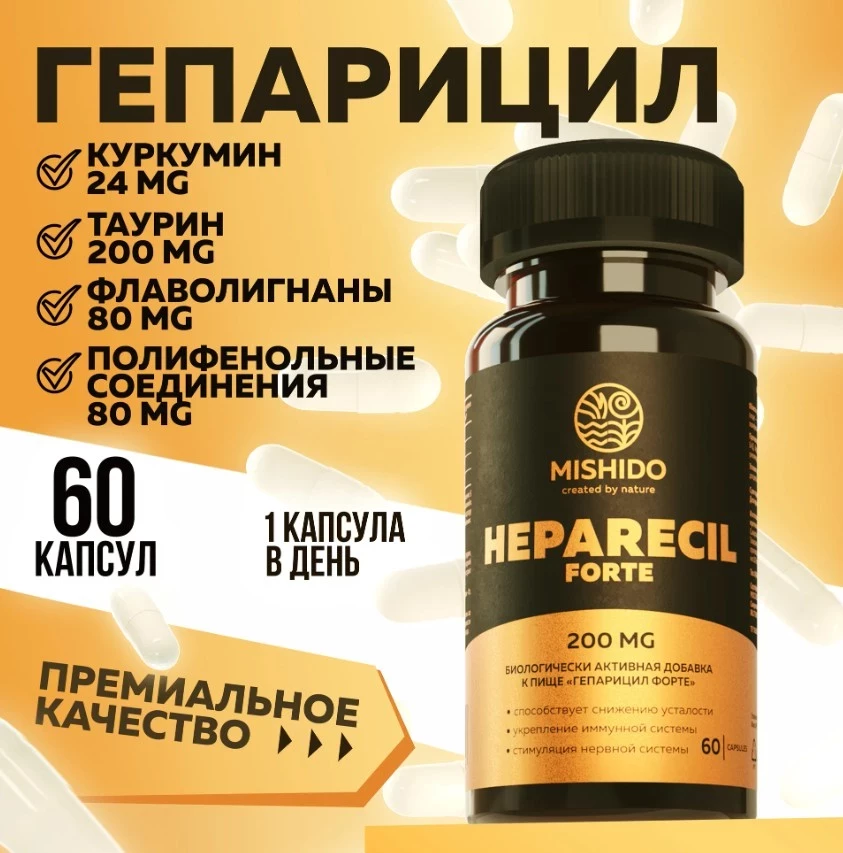 Комплекс «ГЕПАРИЦИЛ ФОРТЕ» от MISHIDO — это умная биохимия для тех, кто не хочет просто «поддерживать печень», а реально её восстанавливать и защищать. Таурин, куркума, расторопша, имбирь и артишок работают как слаженная команда: снижают токсическую нагрузку, усиливают желчегонное действие, нормализуют сахар и холестерин. Добавка мягкая, но мощная — идеальна для длительного курса, особенно в период постнагрузки. Не зря она входит в топ БАДов для печени у тех, кто в теме.