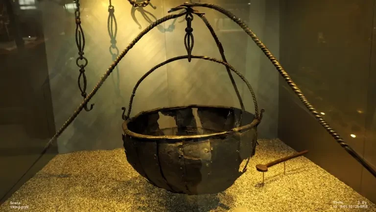 Интересно, что в присланном из музея материале подчёркивается, что на военных кораблях эпохи викингов не было очага, а это значит, что очень маловероятно, что повар мог бы готовить горячую еду на борту судна. Подтверждением этой информации являются норвежские юридические тексты, которые содержат правила о трёх ежедневных поездках повара на берег: одна поездка нужна была для того, чтобы запасти воду, и две для того, чтобы приготовить горячую еду. Невольно возникает вопрос: а плыли-то они когда? И если плыли, то на какое расстояние? Очевидно, что так много высадок на берег было возможно лишь потому, что военные корабли держались недалеко от берега и ориентировались по точкам на побережье. Что касается еды, употребляемой на борту корабля, то она называлась nest, farnest или hafnest и состояла из каши, приготовленной в большом клёпаном котле. Такие котлы были найдены в корабельных захоронениях, Тунэ и Осеберга.