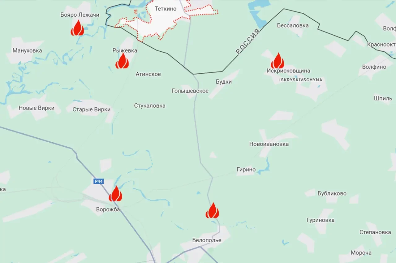 Появляются сообщения о том, что остатки украинских подразделений, которые пытались оборудовать позиции в рабочем посёлке Тёткино Глушковского района, были вынуждены под огнём ВС РФ отступать на сопредельную территорию. По сообщениям с мест, в Тёткино боеспособных украинских военнослужащих, которые проводили накаты в течение нескольких дней, на утро 7 мая не осталось.