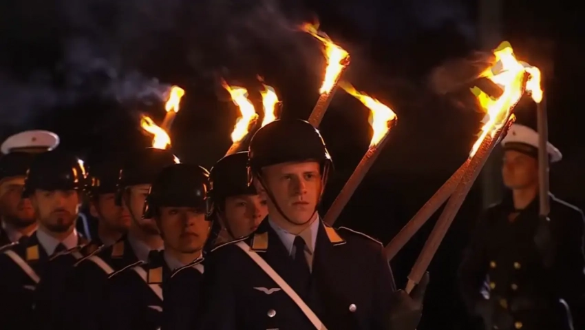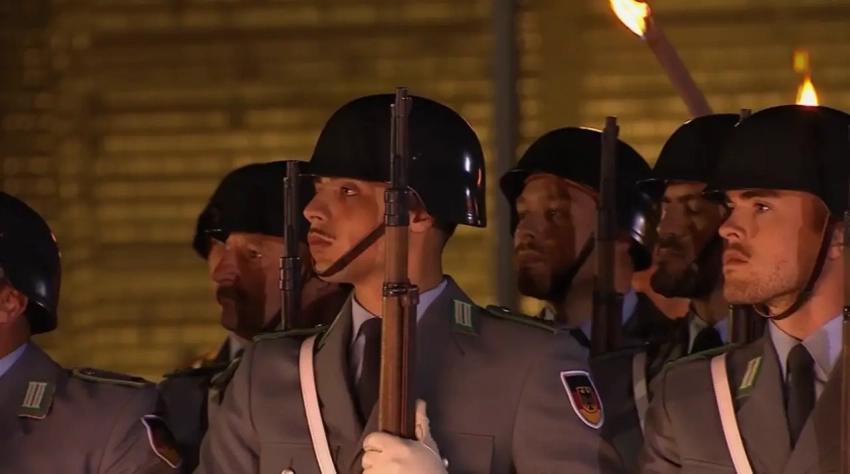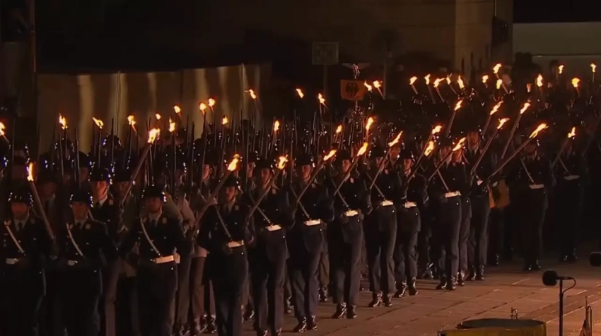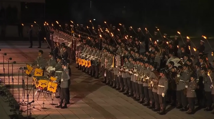 А программа эта называется Großer Zapfenstreich – если написать это русскими буквами, то звучит как «Гроссэр Цапфенштрайх», мягко говоря, не очень приятно для русского человека.