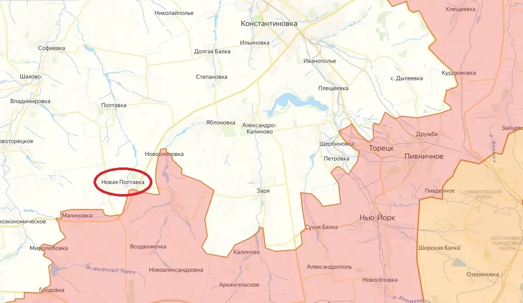 Штурмовые подразделения российской армии начали закрепляться на позициях в населенном пункте Новая Полтавка, расположенном к юго-западу от оккупированной ВСУ Константиновки. Кроме того, ВС РФ выбили противника из крупного опорного пункта севернее недавно освобожденной Новоеленовки.