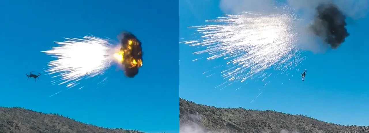 Работа 35-мм снаряда с воздушным подрывом на траектории по БПЛА