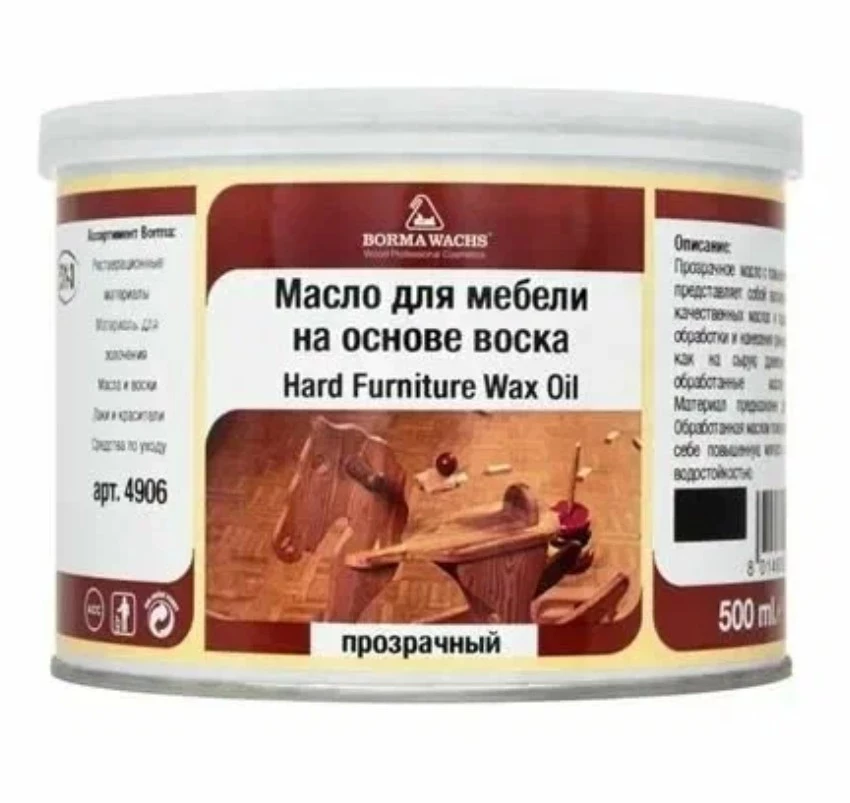 Hard Furniture Oil от Borma Wachs — твёрдое масло для внутренней отделки мебели и деревянных элементов, уверенно занявшее место в подборке масло для мебели рейтинг. Благодаря армированной формуле из льняного масла, карнаубского и пчелиного воска, оно эффективно защищает дерево от влаги и механических повреждений, придавая покрытию благородную матовую глубину. Особенно хорошо проявляет себя на пористых породах древесины, а простота нанесения делает его идеальным решением даже для непрофессионального ухода.