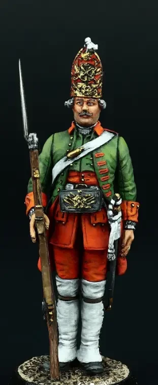 Гренадер Санкт-Петербургского пехотного полка, 1740-1750 гг. Производители: «Silver Dream Studio» и «Оловянный парад»