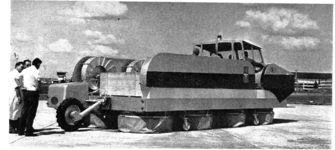 В Советском Союзе таким универсальным транспортным средством стал ГАЗ-16А начала 60-х годов. Машина из Горького строилась вокруг компактного газотурбинного двигателя, который приводил в движение горизонтальный воздушный нагнетатель. Но это был далеко не единственный мотор на борту гибрида. Два вспомогательных двигателя от мотоцикла (по 28 л.с. каждый) обеспечивали поступательное движение в режиме «воздушная подушка» — они приводили пару пропеллеров в корме. На модификации ГАЗ-16Б от них отказались, оформив единый привод от ГТД к поворотным вентиляторам. Когда дорога позволяла пользоваться колесным движителем, в дело вступал мотор от ГАЗ-21.