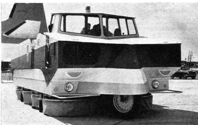Например, Terraplane BC7 задумывался как универсальный всепроходимый грузовик, способный преодолевать любое бездорожье, а при необходимости пересекать водные преграды и болота. При этом автомобиль на воздушной подушке должен был работать и на дорогах общего пользования. Для этого предусматривались четыре колеса, разнесенные строго по углам кузова. Получилось неказисто и с огромным диаметром разворота. Под кузовом размещались десять воздушных подушек, которые в колесном варианте подтягивались к раме. Размеры машины внушали уважение: длина 9,6 метра, ширина 3,1 метра. Но при этом агрегат брал на борт не более двух с половиной тонн полезной нагрузки. Помимо бортового варианта существовал автобус с большой площадью остекления. Авторы проекта, очевидно, надеялись продавать сие чудо туристическим компаниям.
