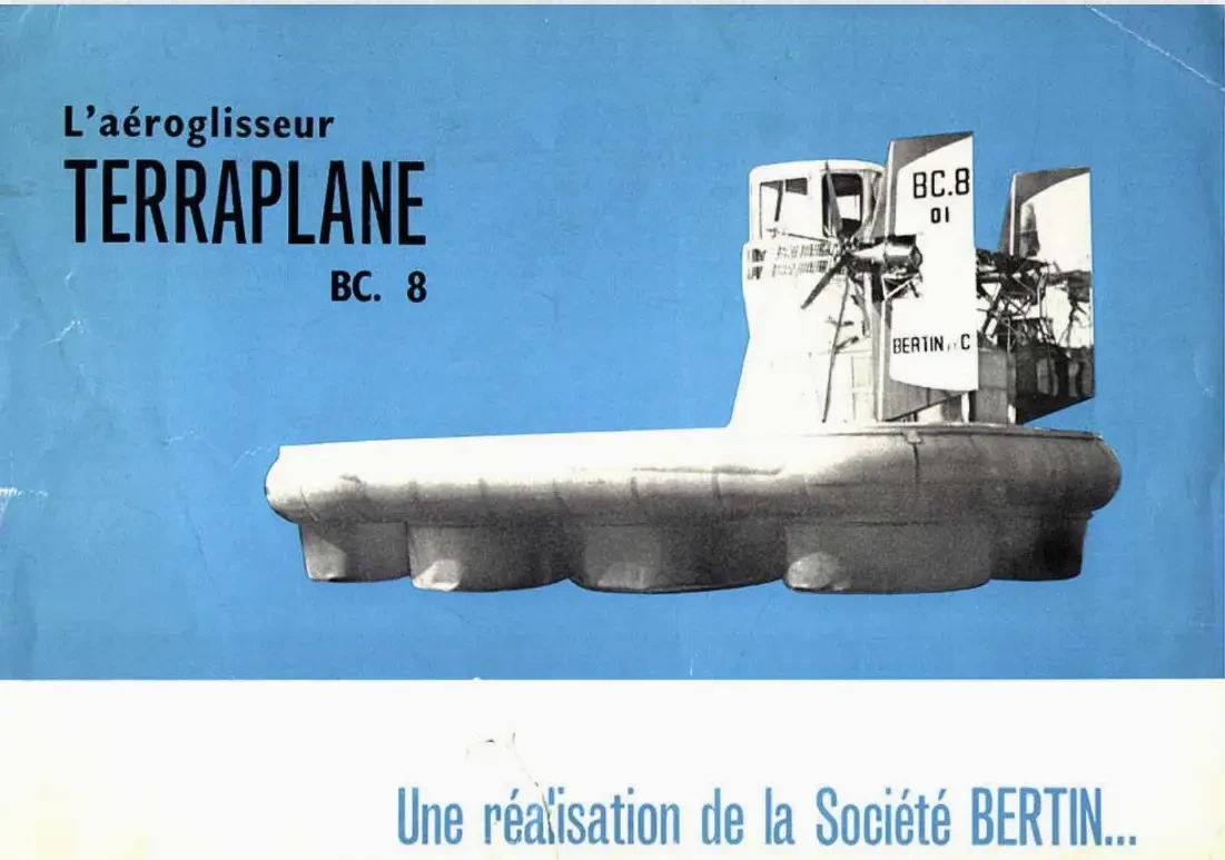 Terraplane BC4 совсем не походил на транспортное средство для дорог общего пользования. Это была грузовая платформа, размещенная на восьми гибких юбках или фартуках, в которые нагнетался воздух. Всё это хозяйство приводилось в движение реактивным двигателем Turbomeca Marbore. Уникальность конструкции Жана Бертена заключалась в этих самых фартуках, которые могли наклоняться в любую сторону. Угол наклона был небольшой, но он позволял машине на воздушной подушке разгоняться до нескольких десятков километров в час. При этом судно парило над поверхностью на высоте 3-4 см. Получался корабль со своеобразной системой изменяемого вектора тяги.