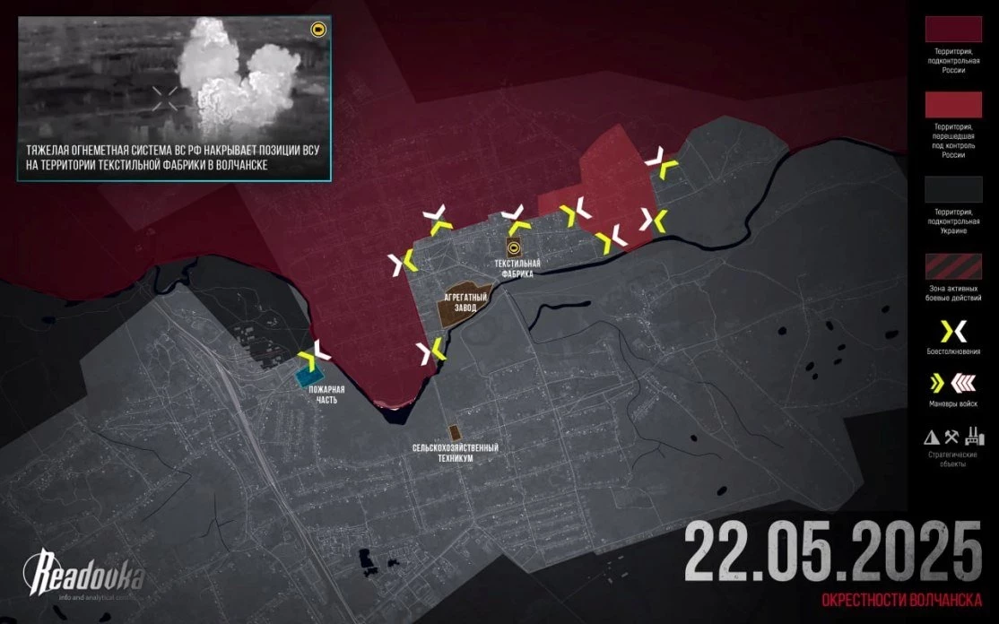 На Харьковском направлении ВС РФ взяли под контроль значительную территорию в восточной части Волчанска, наступают в районе Волчанских Хуторов.