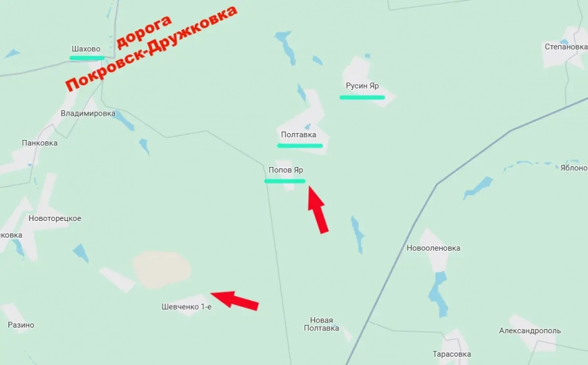 Противник вынужден держаться за линию Попов Яр – Полтавка- Русин Яр, к которой подошли наши, чтобы не допустить выхода ВС РФ к упомянутой автодороге, ведь в противном случае армия России возьмёт её под физический контроль, что в значительной степени нарушит логистику ВСУ между Покровском и Славянско-Краматорской агломерацией. Сейчас до указанной автодороги около 8 км.