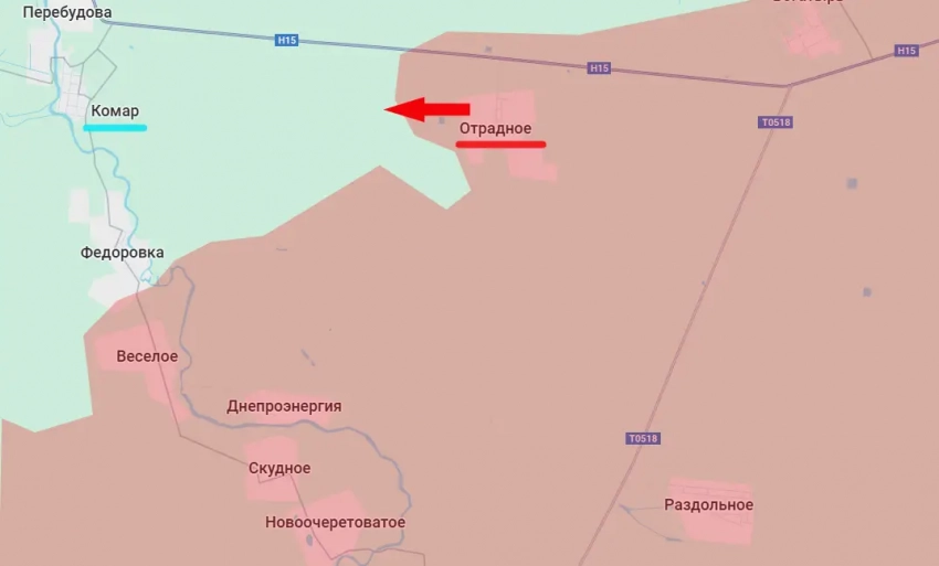Вместе с Отрадным под контролем армии России оказались и дополнительно около 3 км автомобильной дороги Н15, ведущей в Запорожскую область.