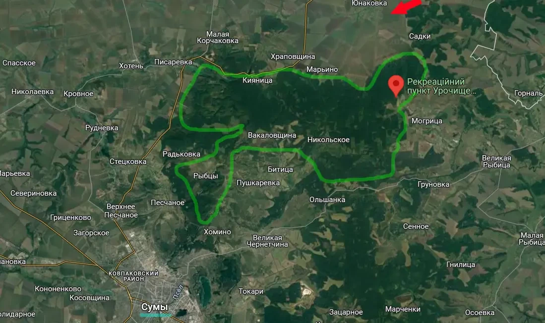 Исходя из этого, можно сделать вывод о том, что командование ВСУ считает, что в случае наступления на Сумы российские войска пойдут через леса. Но к северу и западу от Сум особенно густых лесов в отличие от северного и западного направления нет...