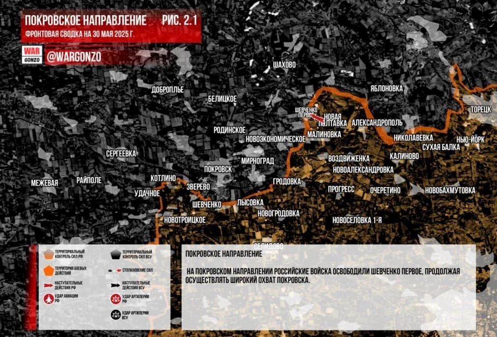 Главные новости » Эксклюзив » ВС РФ ведут ожесточённые бои к северу от дороги Мирноград - Константиновка на Покровском направлении: свежие данные на 30.05.2025