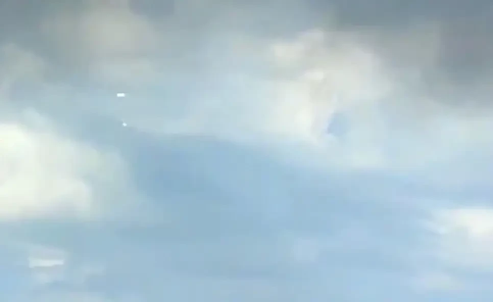 Жители Запорожья выложили кадры, на которых в небе виден спускающийся объект на парашюте.