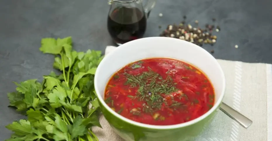 Чтобы совсем прочувствовать ТОТ вкус, попробуйте этот борщ с ржаными сухарями. Ну а кто не хочет полного погружения в историю – ломоть хлеба, намазанного горчицей, и ломтики сала из морозилки вам в помощь. Ну и ложечка сметаны тоже не лишней будет.