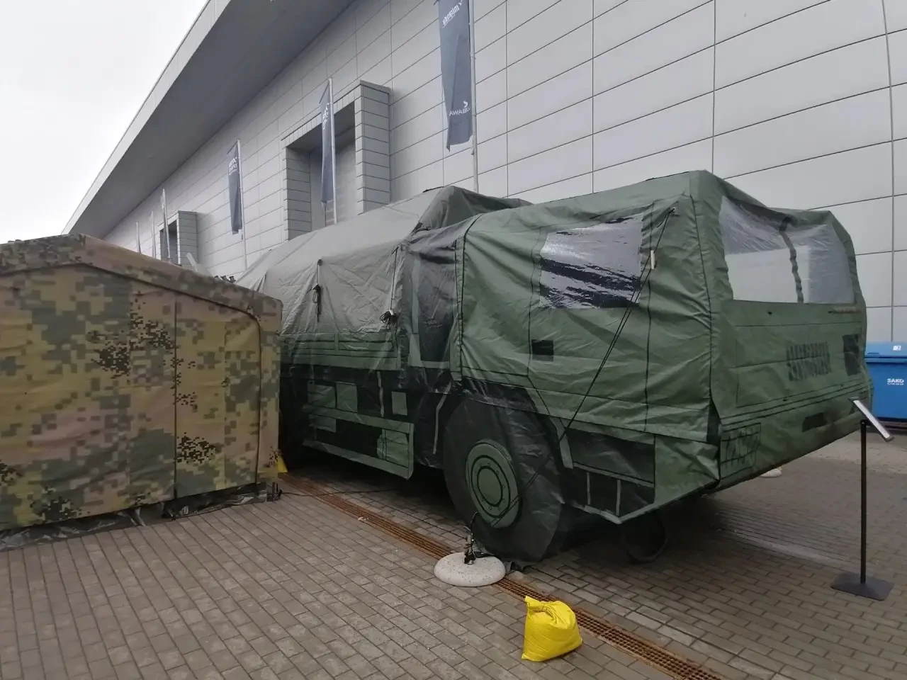 На оборонной выставке в Чехии представили надувной макет польского военного грузовика Jelcz 442.32
