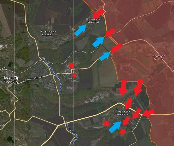 На Артёмовском фронте армия РФ успешно продвигается в районе Богдановки. Продолжается штурм Красного, и имеются положительные результаты. В области Клещеевки и Андреевки ситуация остается без существенных изменений.