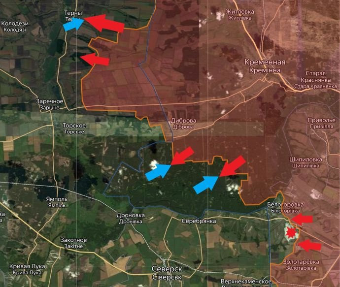 На сегодняшний день на передовой в Купянском секторе наши войска достигли Синьковки, и в настоящее время происходят ожесточенные столкновения в районе Табаевки. В 15 км к западу от Кременной наши войска сражаются на окраинах населенного пункта Терны, ВСУ направляют резервы.