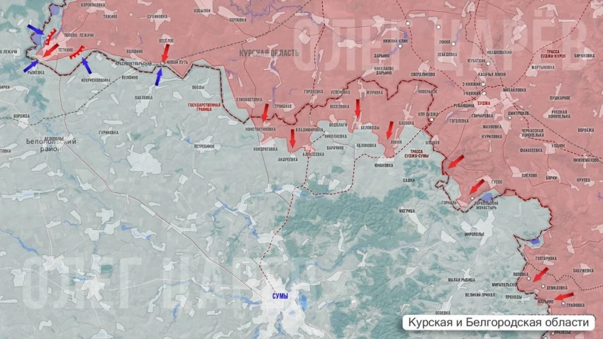 На границе Сумской и Курской областей тяжёлая ситуация в районе Тёткино. Противник практически непрерывно атакует. Появляются сообщения, что ВСУ при помощи дронов и артиллерии фактически контролируют дороги из Тёткино, а наши десантники оказались в оперативном окружении, но информация нуждается в подтверждении. В Сумской обл продолжаются упорные бои за Юнаковку. С мест сообщают, что ВС РФ фактически освободили это село и приблизились к Малой Корчаковке, - пишет Олег Царёв.