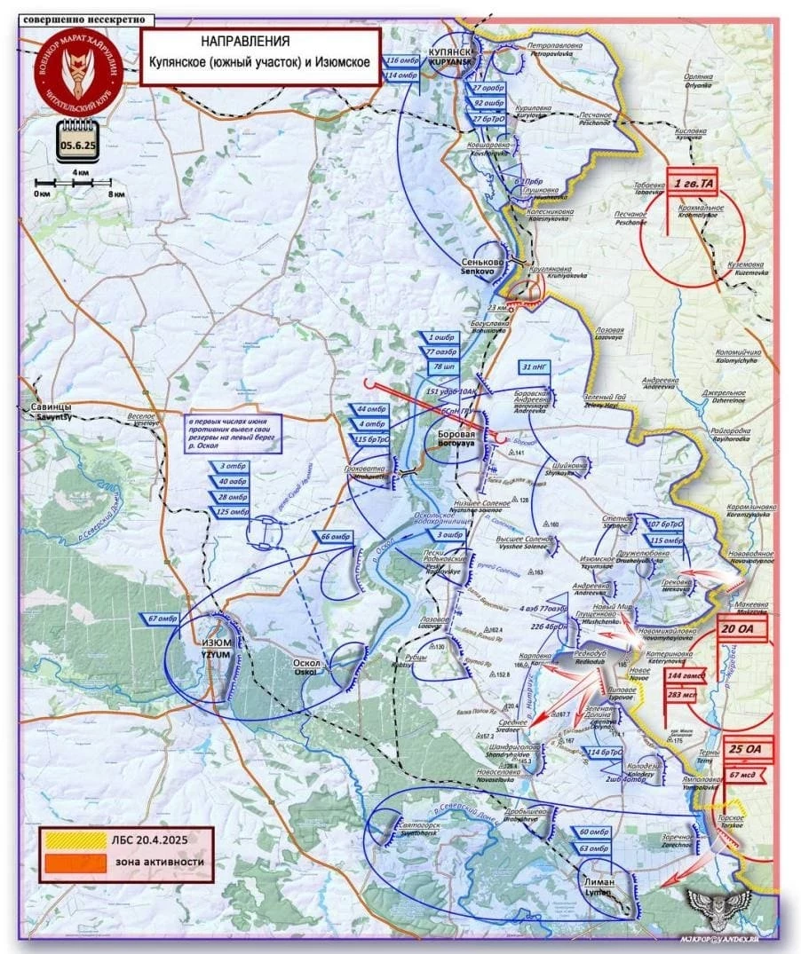 На Краснолиманском фронте ВС РФ продолжают штурм Карповки и Зелёной Долины, контроль над последней имеет тактическое значение, поскольку село расположено на трассе по направлению к рубежу Шандриголово-Дробышево.